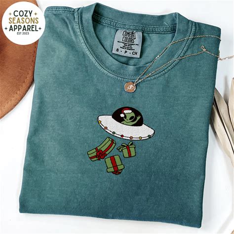 Embroidered Christmas Alien Comfort Colors Shirt