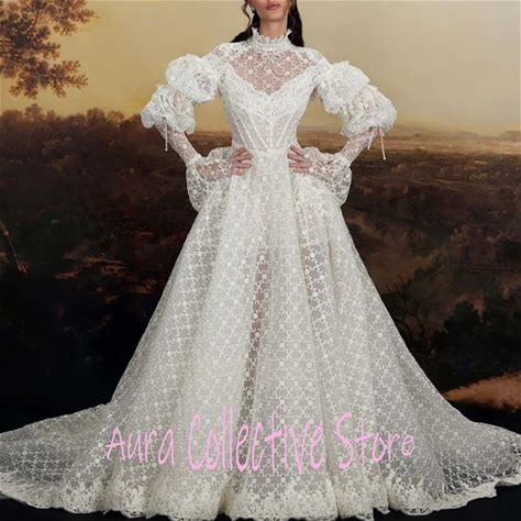 Vintage Lace V-Neck A-Line Wedding Dress 3D Floral Appliqué High Slit Brides Gown Elegant Vestido De