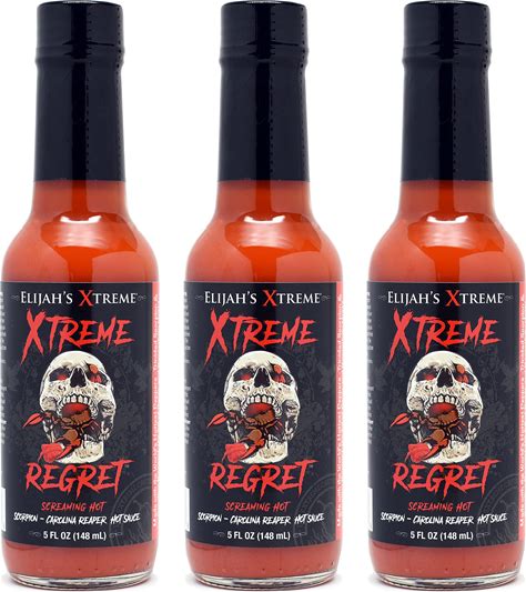 Elijah's Xtreme Regret Hot Sauce 3 Pack - Carolina Reaper And Trinidad Scorpion - The 2 Hottest Peppers In The World For An Extreme Fiery Heat