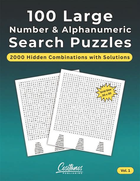 100 Large Number & Alphanumeric Search Puzzles: 2000 Hidden Combinations With Solutions