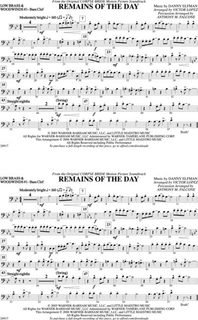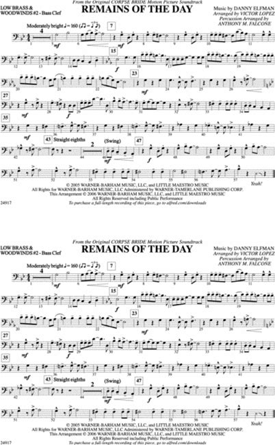 Remains Of The Day (From Corpse Bride): Low Brass & Woodwinds 2 - Bass Clef - Digital Sheet Music