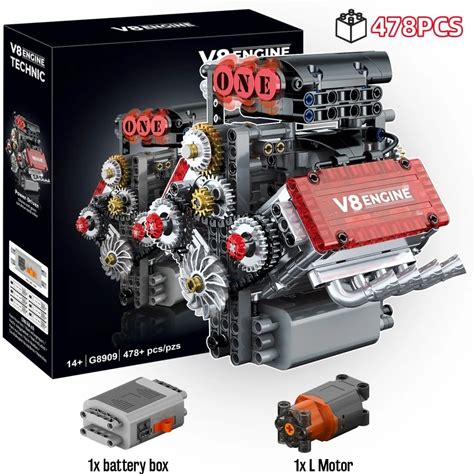 Educational STEM Technical Sport Car V8 Engine Building Blocks Mechanical Model DIY Construction Kit
