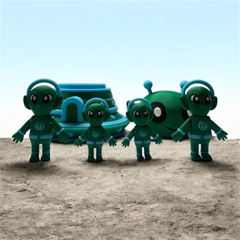 Articulating Alien Family With Spaceship Home - 3D Printed Flexible Sci-Fi Toy Set