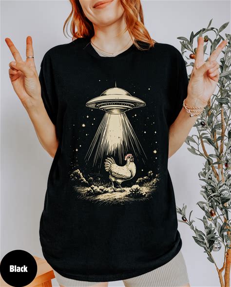 Chicken UFO Shirt, Funny Alien Chicken Tee, Outer Space Shirt, Farm Animal UFO Top, Unique Graphic Tee, Cosmic Chick